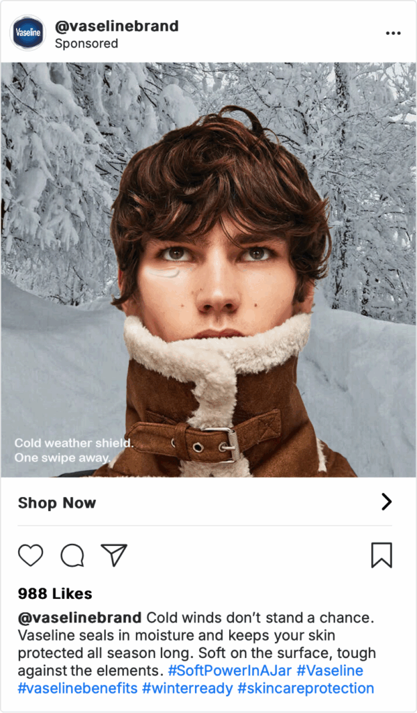 • Winter dryness? Vaseline seals in moisture, protecting you from harsh weather.